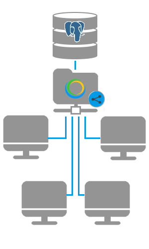Полноценной работе системы требуется установка Программного обеспечения и подключения его к Базе данных, если установка производится впервые, то необходимо установить оба компонента (Программное обеспечение и Базу данных) в зависимости от конфигурации Вашей сети. Если установка компонентов встраивается в уже функционирующую систему, то отдельная установка Базы данных не требуется (необходимо только настроить подключение к имеющейся), а Программное обеспечения устанавливается в зависимости от Вашей политики конфигурации сети (либо локально на АРМ каждого пользователя, либо по ссылке из Общедоступной папки)